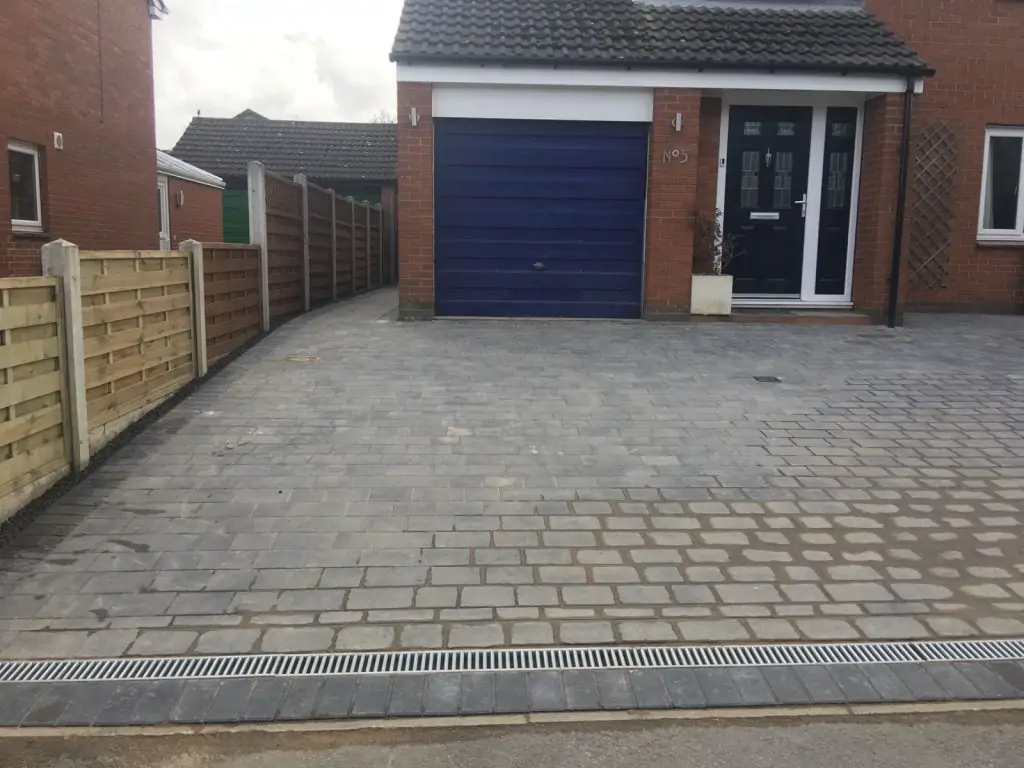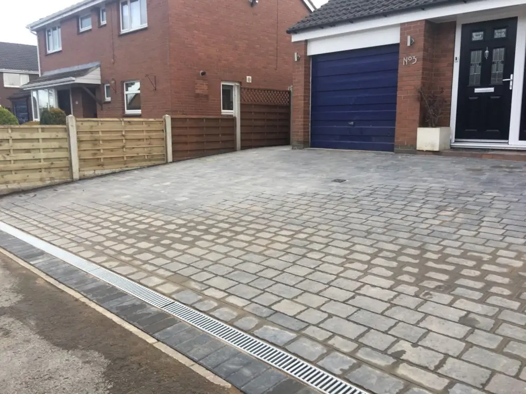 The ground was prepared and the new blocks laid, because of the slope we installed a channel drain along the front edge of the new drive to help with the drainage.